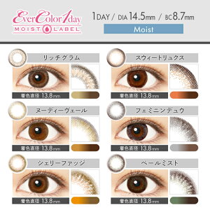 ★ポイント20倍★ エバーカラーワンデーモイストレーベル 【10枚入×6箱】 / カラコン ワンデー 1日使い捨て 度あり うるおい デカ目