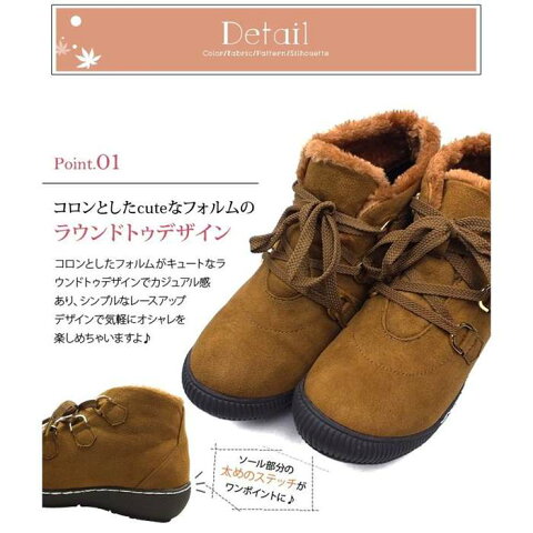 ファーで暖かく心地いい履き心地レースアップデザインの撥水カジュアルショートブーツ。